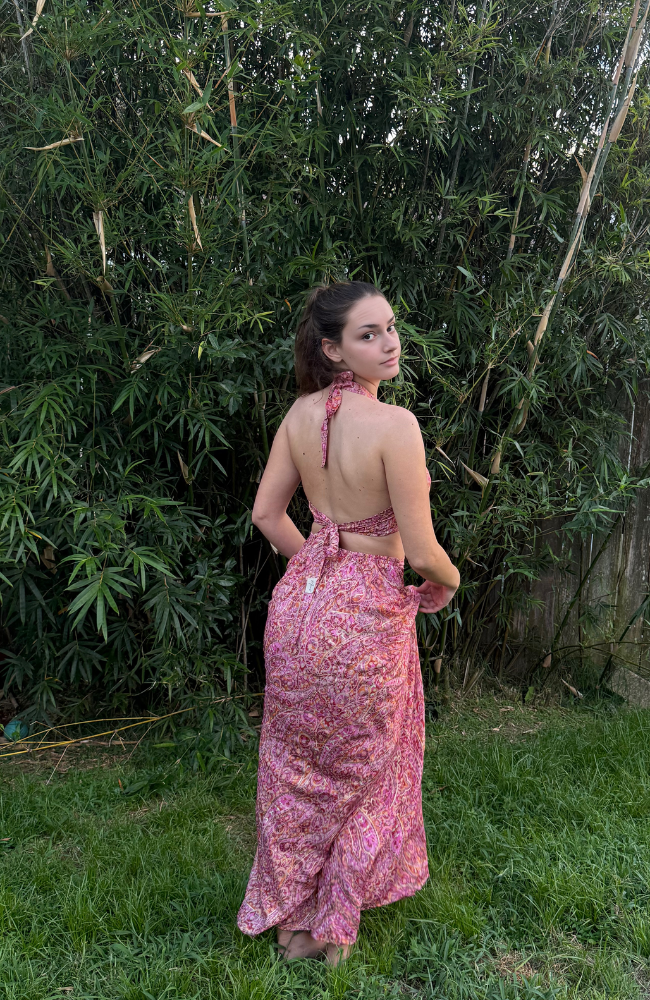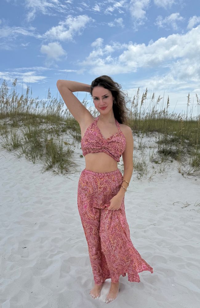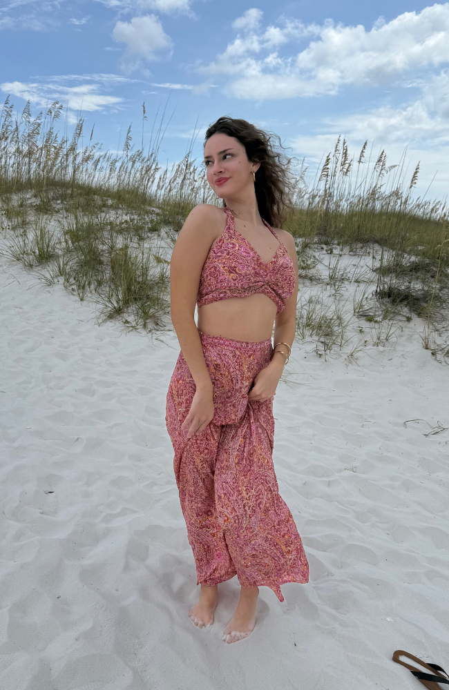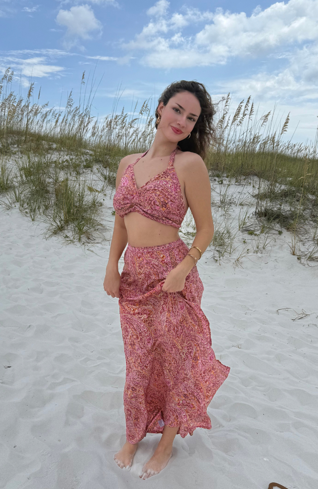 Twist-Front Halter Top & Maxi Skirt in Rose Paisley