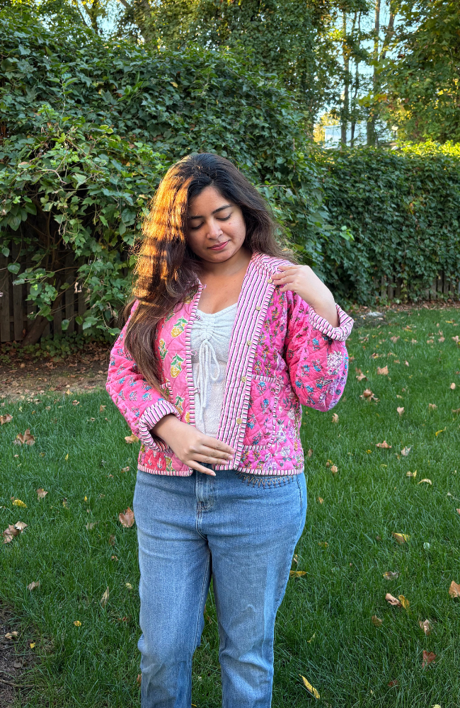 Handmade by skilled artisans in India, every jacket carries its own personality — stitched, pieced, and finished by hand.